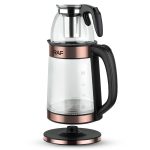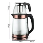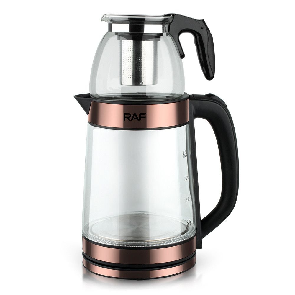 2-piece RAF electric glass teapot 2.2L and 1L glass teapots, can be paired with 2 different teapots, most suitable for quick kitchen tea brewing. It is a double-layer electric kettle with a glass steam teapot, which is multifunctional for health preservation. The kettle is 2.2 liters, 1500 watts, automatically powered off, heated by an electric heating tube. The teapot is placed on top of the kettle, and the power cord is 0.7M.