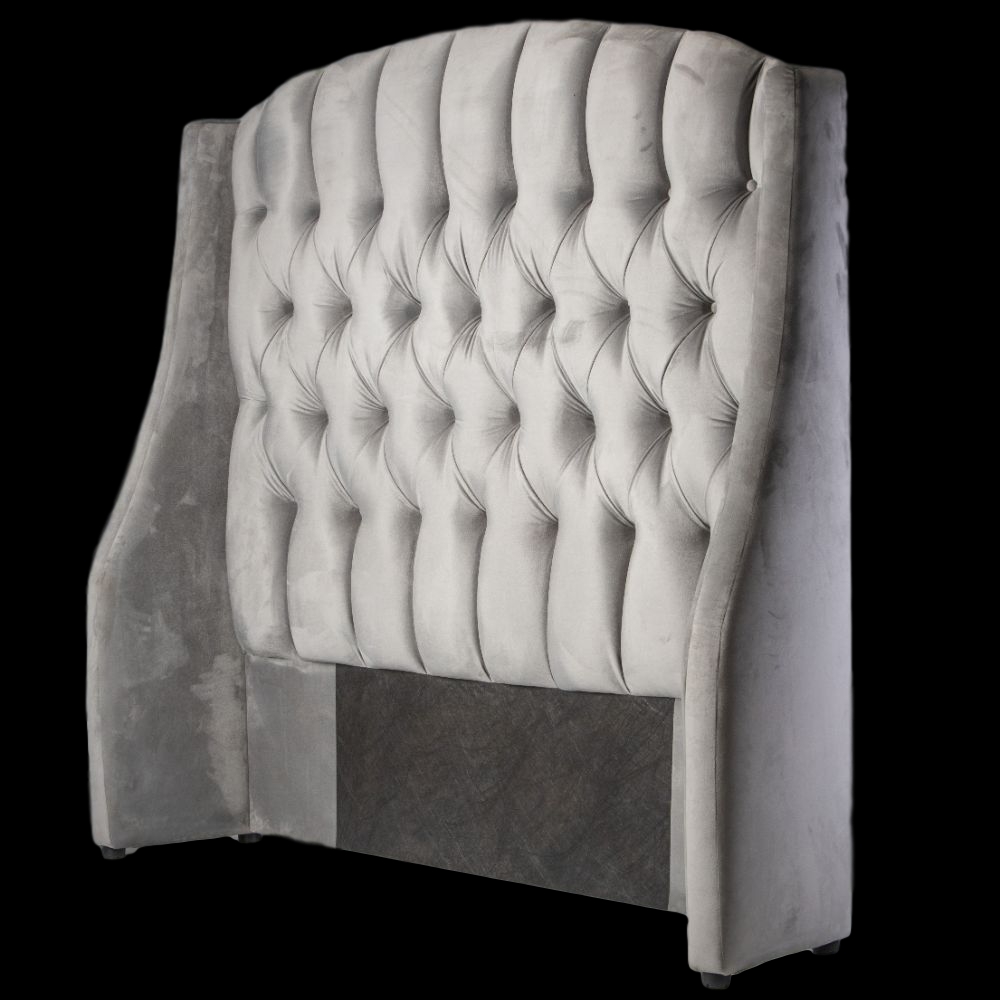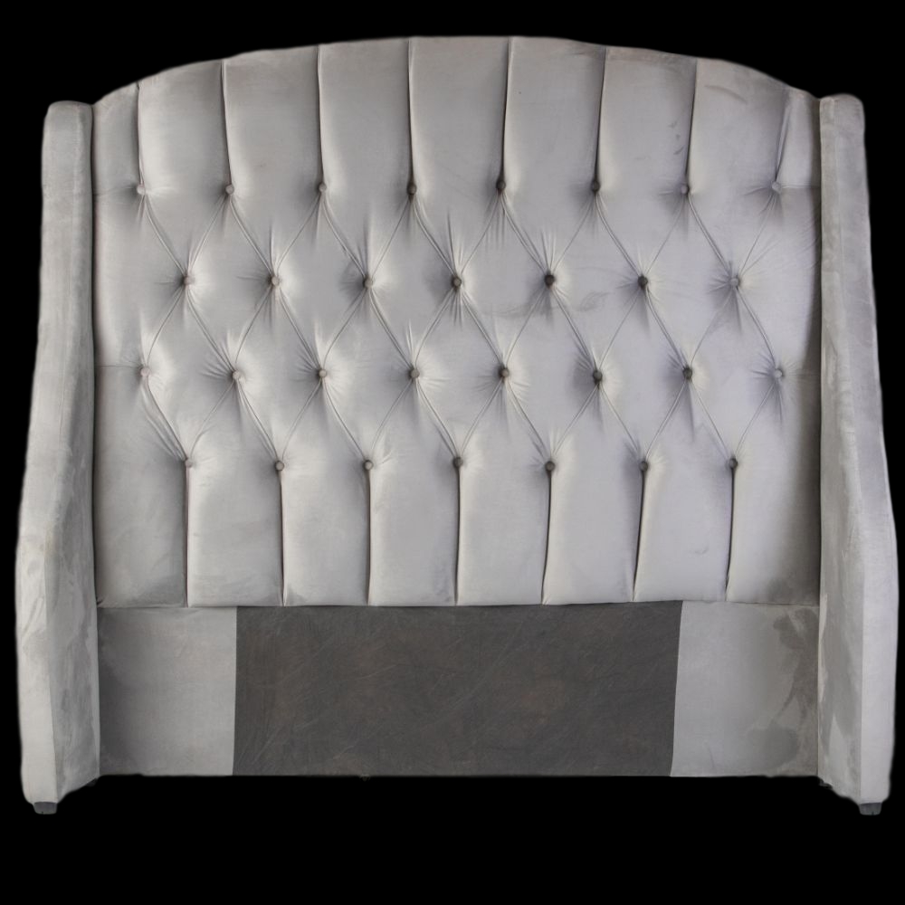 1 x Rounded Arch Deep Button Velvet Headboard with Wings – Grey – Velvet