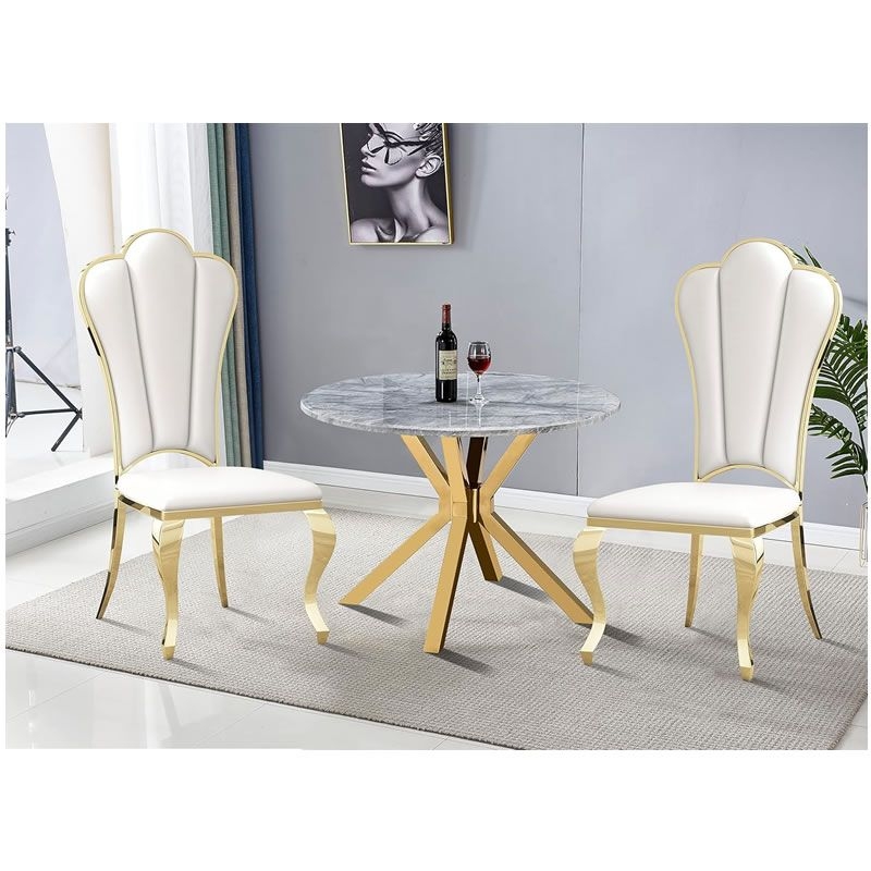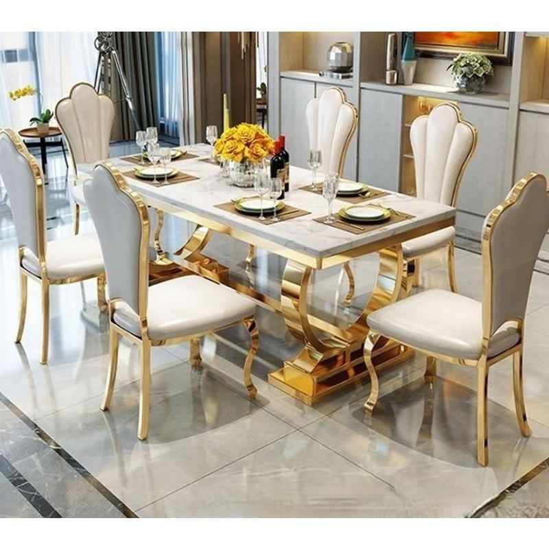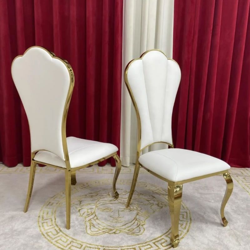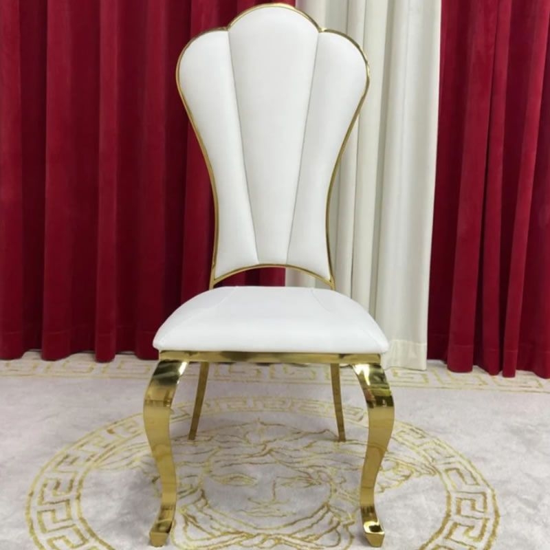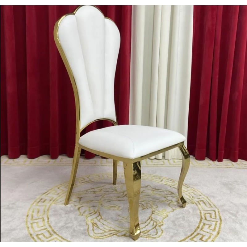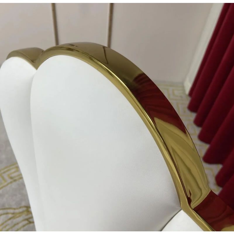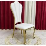 Standing tall on four robust and unyielding gold mirrored legs. The Lamatrimony wedding chair offers unwavering stability while exuding opulence. Distinguished by solid backs, and flawlessly polished finishes. The allure of the magnificent gold high foot backrests, this dining chair has been meticulously crafted. Harmonize effortlessly with your kitchen furniture, enhancing the overall dining experience to new heights of grandeur.