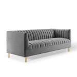 Engage the flowing lines of the shift channel tufted performance velvet living room sofa for a subtle elegance that enhances your living room decor
