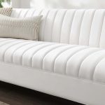 Engage the flowing lines of the shift channel tufted performance velvet living room sofa for a subtle elegance that enhances your living room decor
