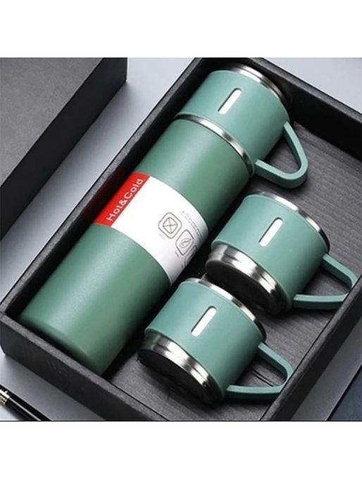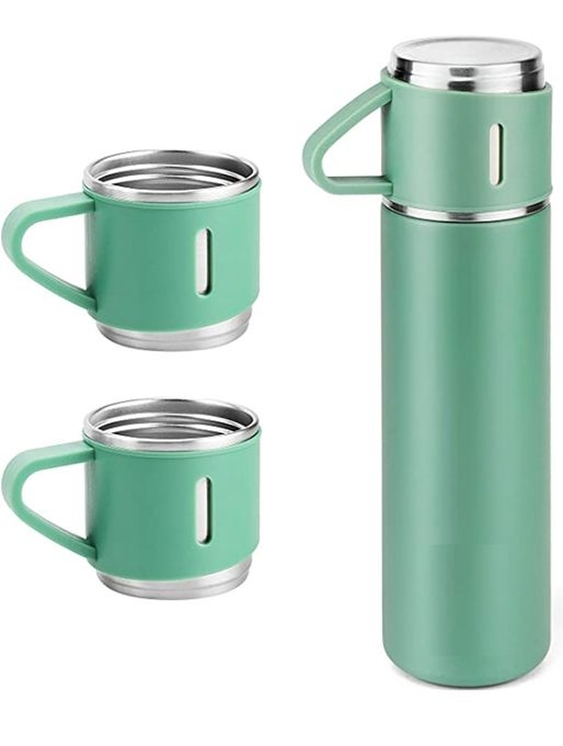 1 x Stainless Steel Thermo Vacuum Insulated Flask Bottle with Cups-Green-500ml