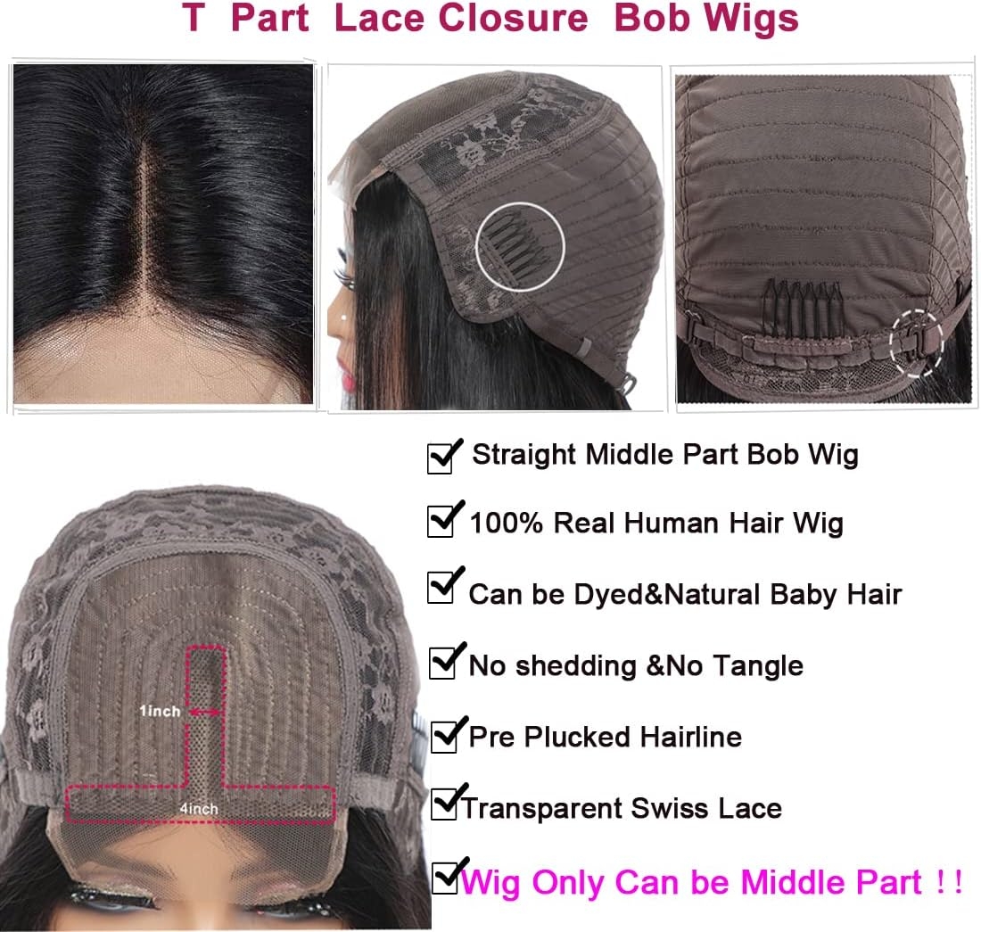 - 2. Bob Wig with Lace Closure, Hair Item:4*1 wig in the middle part makes your hairline more show and looks more natural. Straight Bob Wig