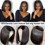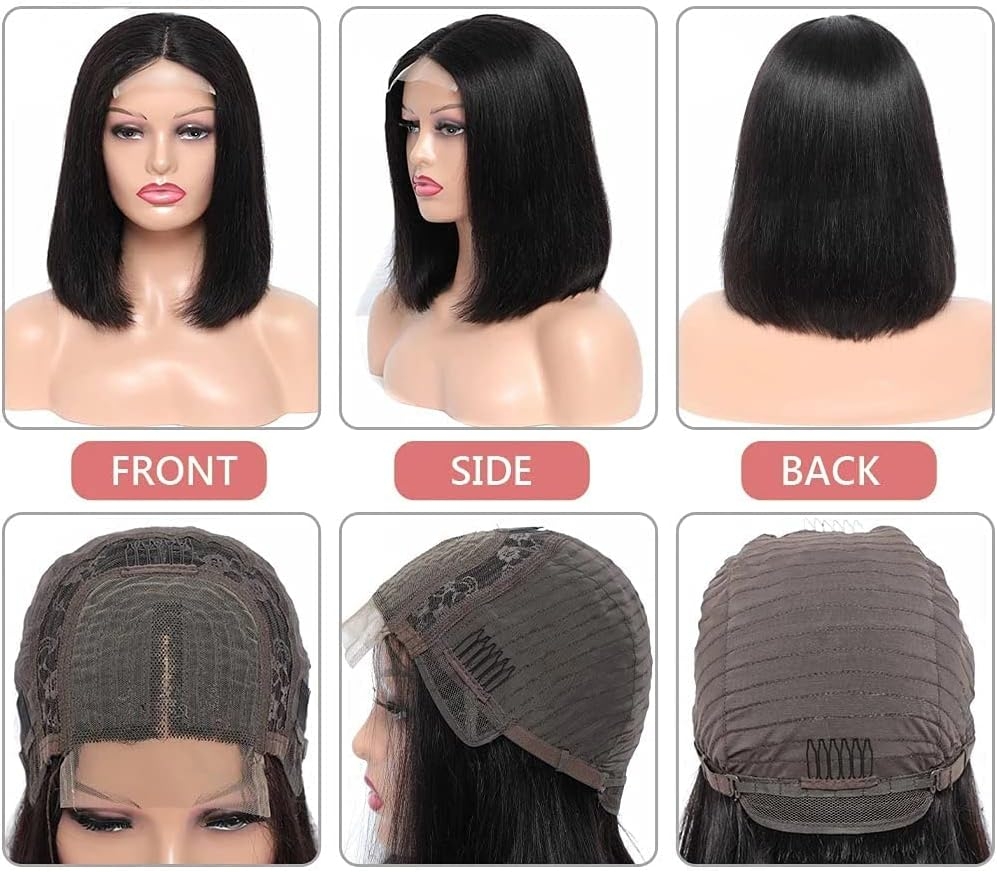10 reviews for Straight Bob Wig Lace Front Human Hair(12inch) 4x4Transparent Lace Frontal Wigs for Black Women Brazilian Remy Human Hair Wigs Pre Plucked Hairline 150% Density Natural color
