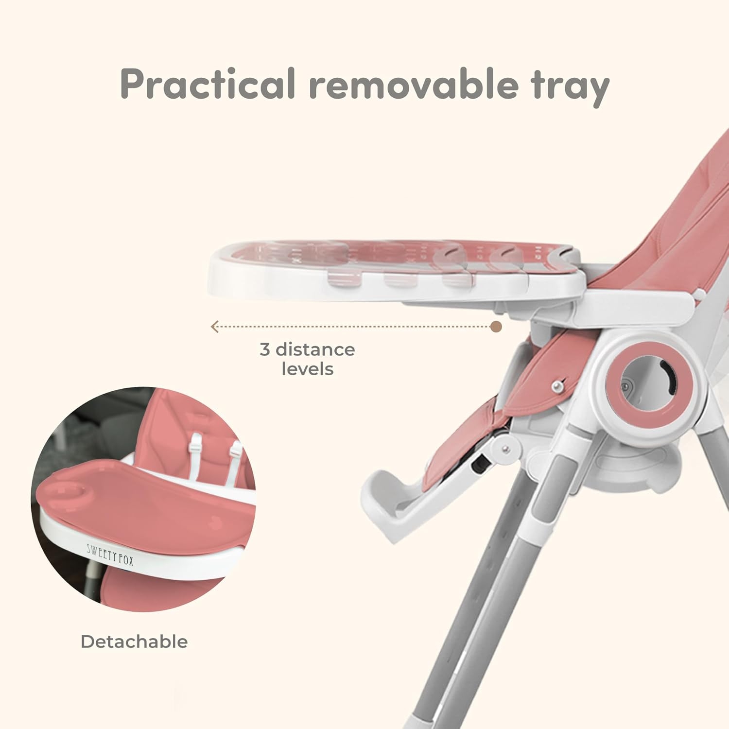 I LOVE this chair! The baby can eat, play, and RECLINE to watch television!……At different heights! The chair is foldable and very easy to carry with you when you travel! I LOVE IT….it’s worth every penny/DOLLAR!!!