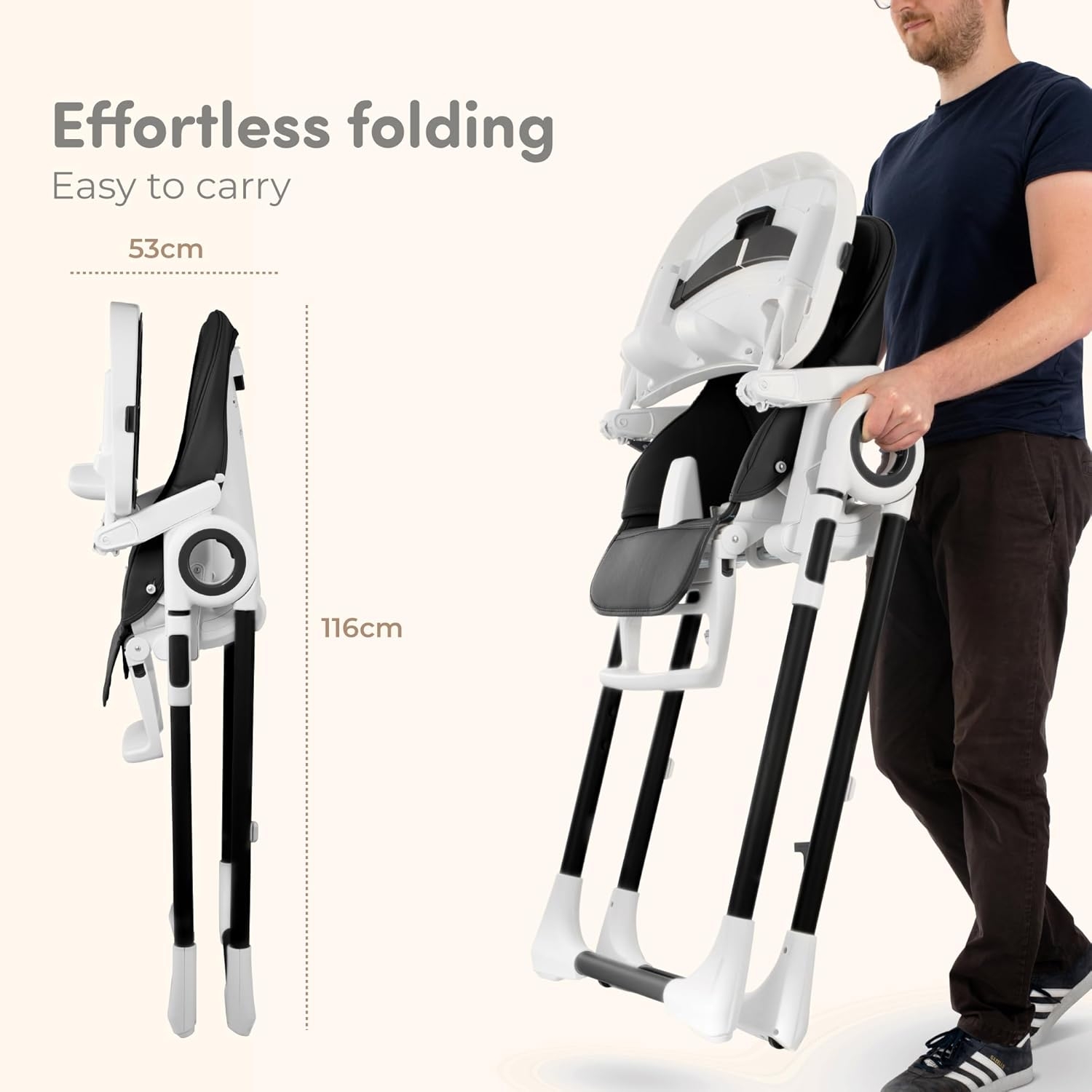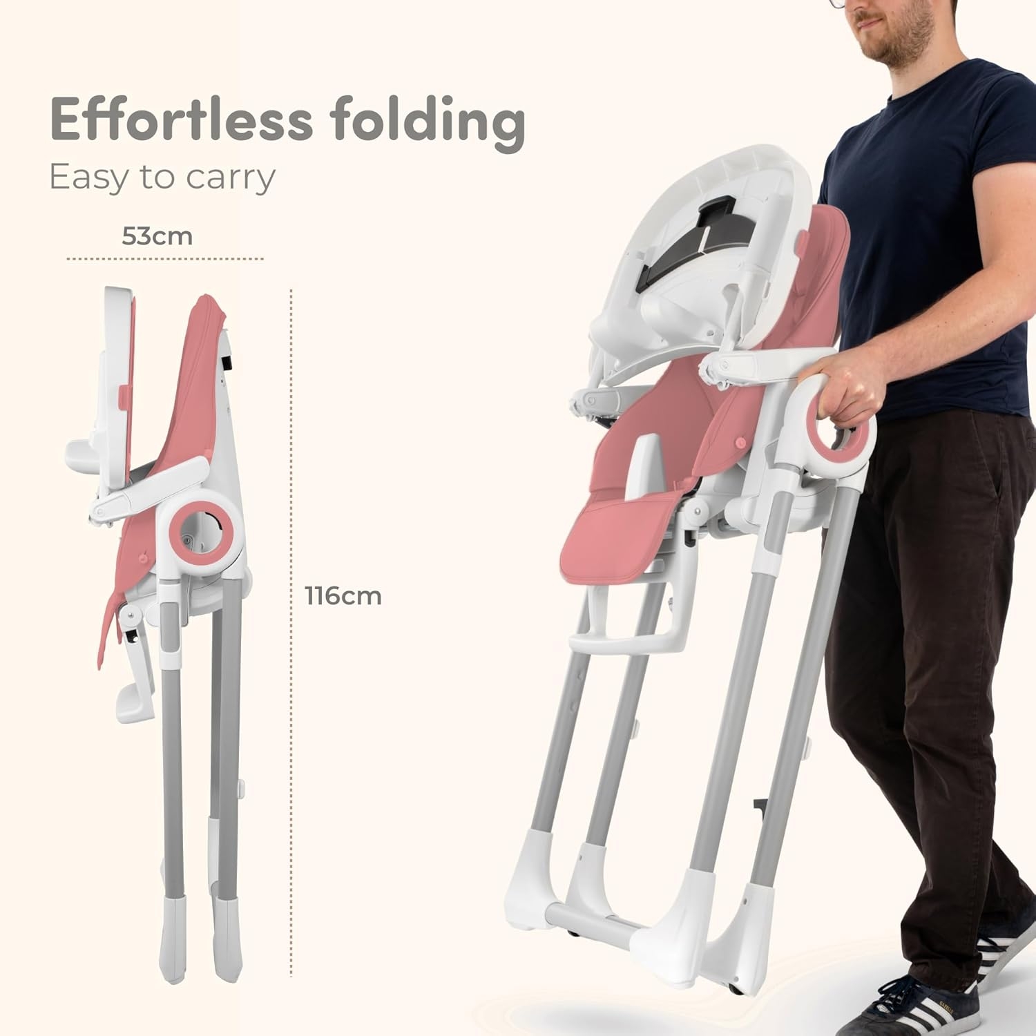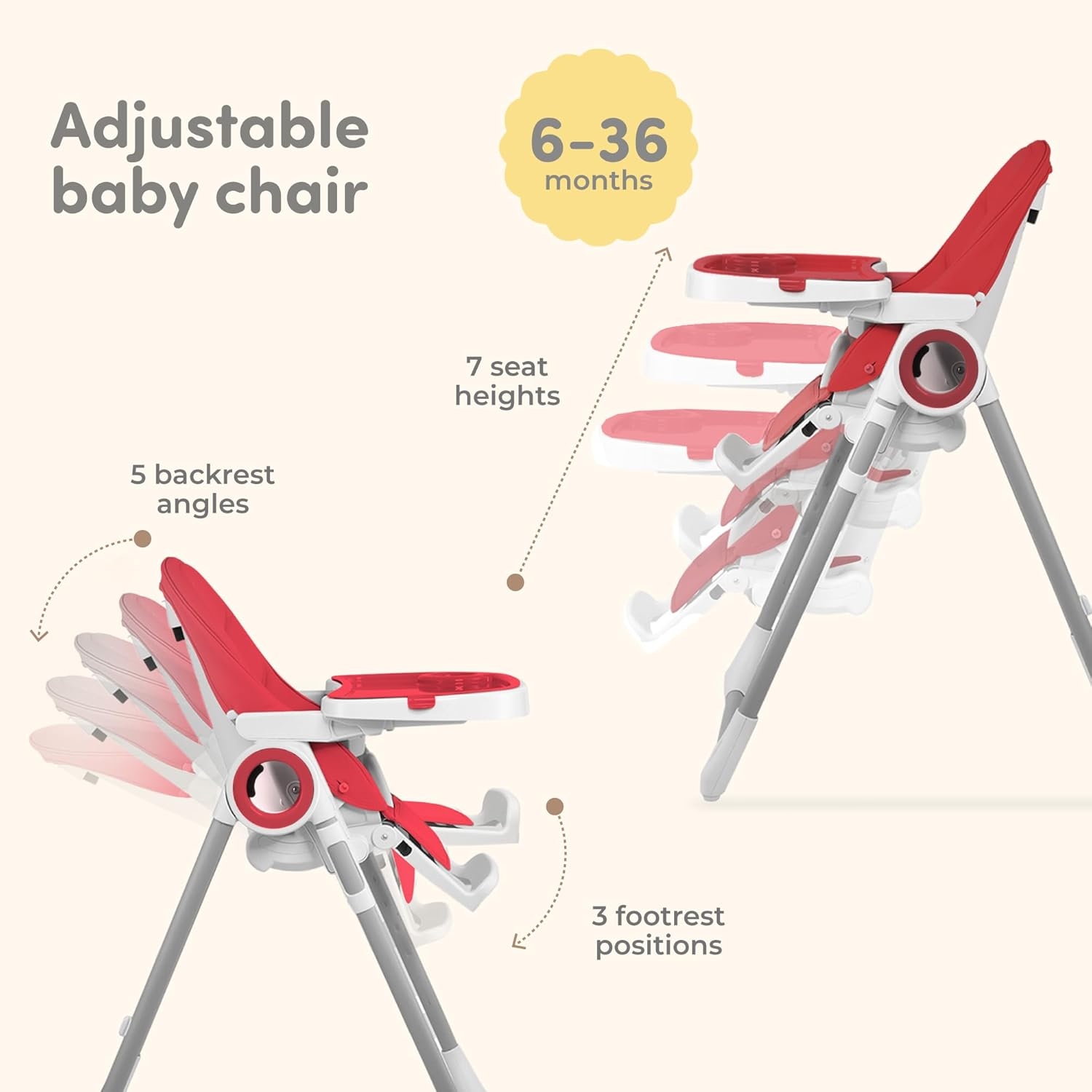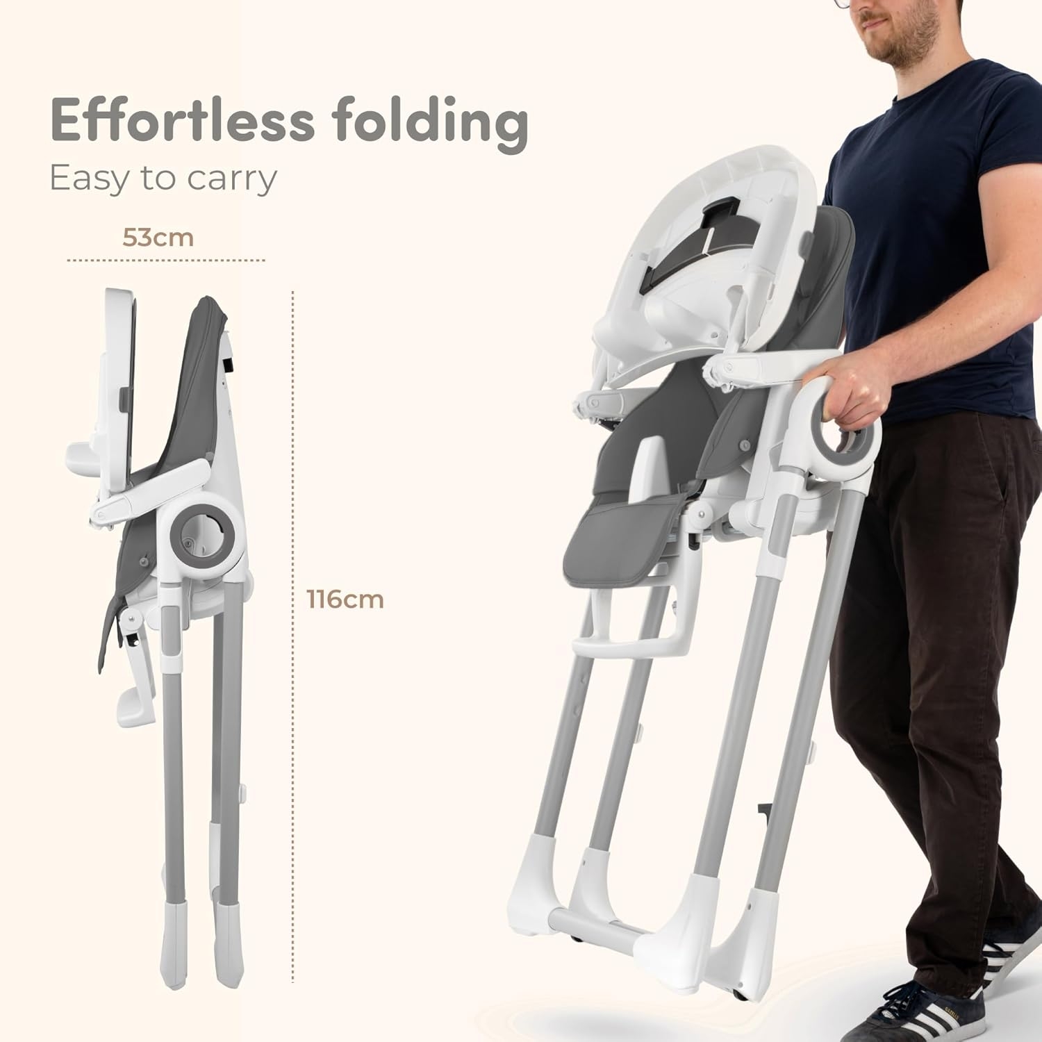I spent a lot of time researching the best high chair for our girl. She is 5 mo and loves it! So far she has fed herself a couple bottles and we’ve fed her some oatmeal. We love that it folds up/lightweight and easy to put away. We also love that it’s wipeable since we all know feeding a baby can get verrrrry messy! Our girl loves the hanging toys as well it’s perfect for while the bottle is warming or waiting for her bowl of food to be ready. When we opened the box the straps were loose but we were able to tighten them appropriately for her at this moment and she will definitely have a lot of time to grow with it these next upcoming years. 10/10 would recommend this cute, sleek snd modern high chair it is definitely worth the money.