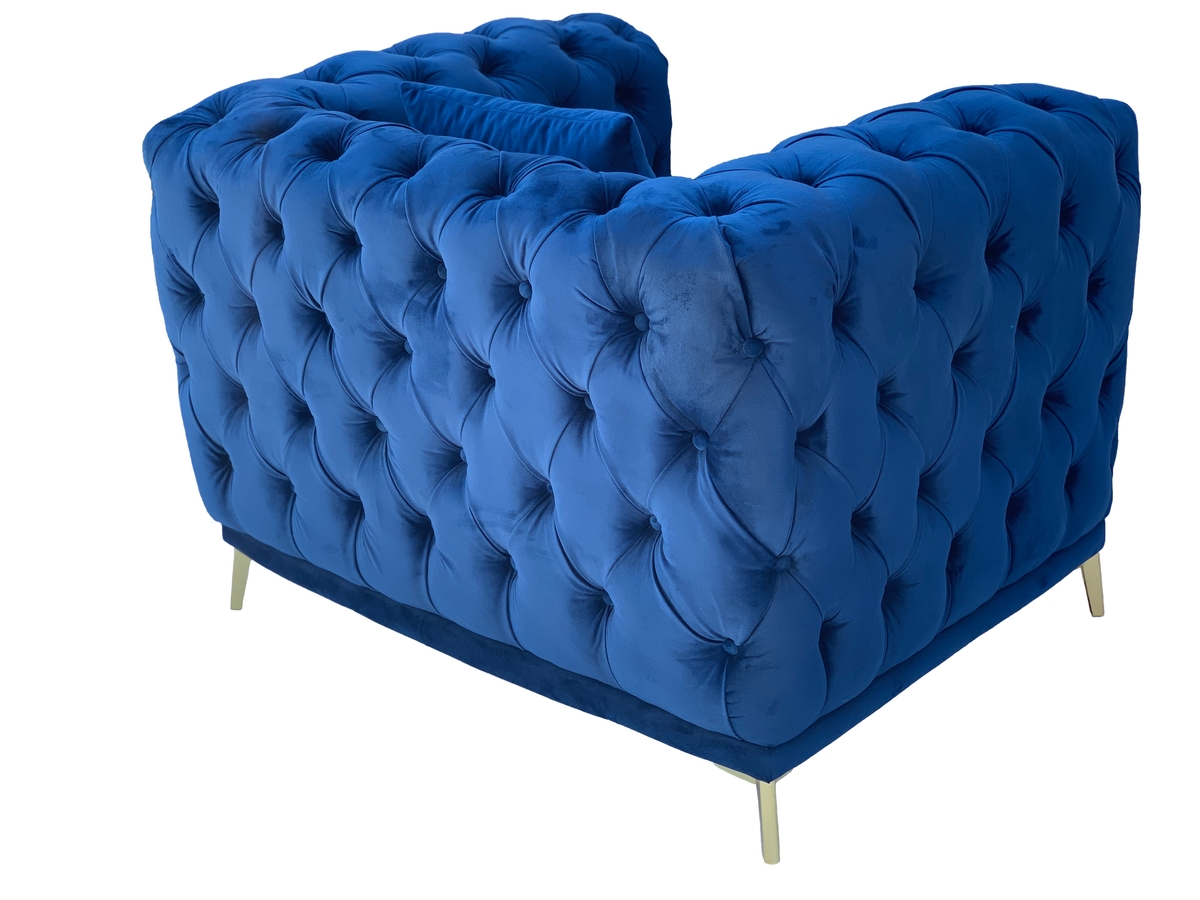 Deep button and velvet upholstery come together to give this armchair an eye-catching, modern glam look. It showcases a traditional wingback silhouette and square arms, which are paired with a tight back and seat for a streamlined look.
