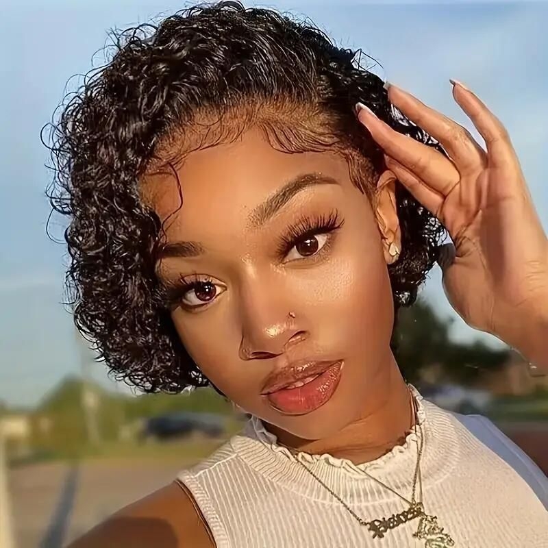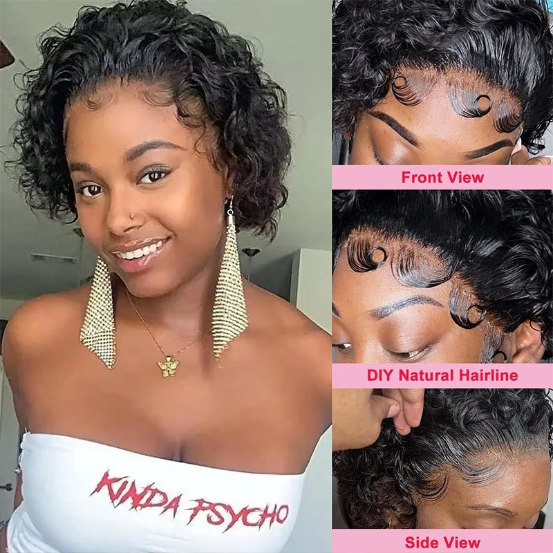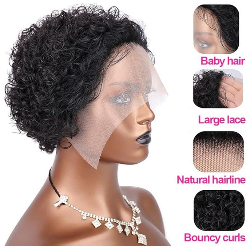 -Wig Style: Pixie Cut Curly Frontal Wig
