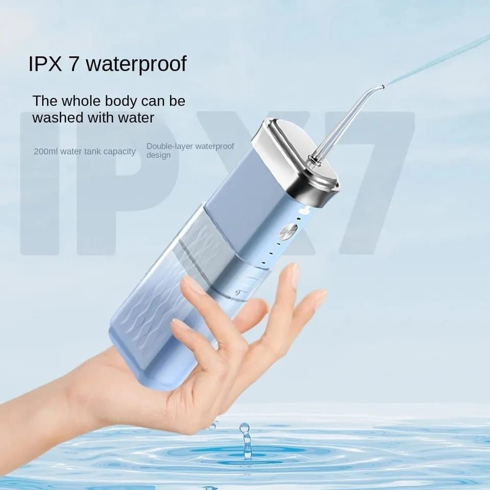 This portable water flosser is a compact oral hygiene device designed to clean the spaces between your teeth and along the gumline using a pulsating stream of water. It is a handheld device that offers a convenient and effective alternative to traditional dental floss for maintaining optimal oral health.