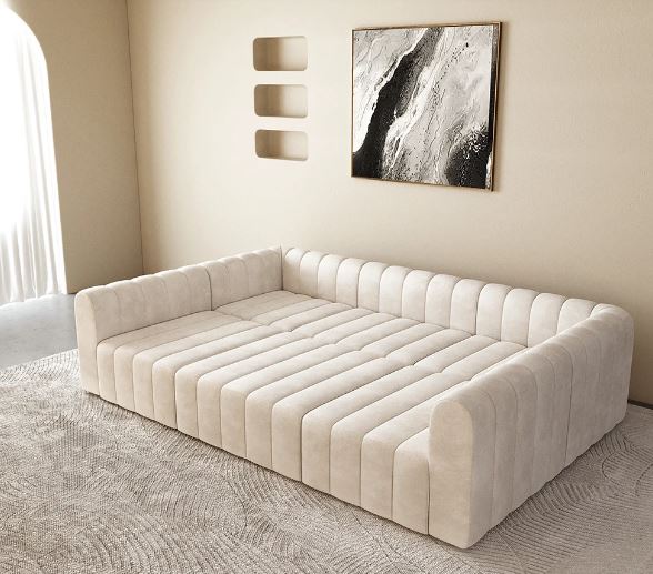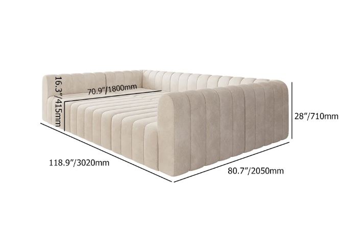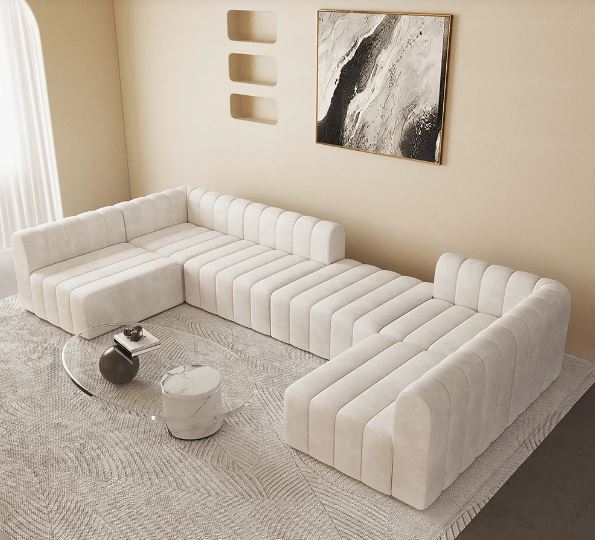 The 118.9″ modular sectional sofa set with plush velvet upholstery and composed convertible sections to fit any living space. Its modular design enables different configurations for a perfect fit in any room. Perfect for large living rooms, this sectional can be an inviting centerpiece to provide style and functionality in comfortable lounging.